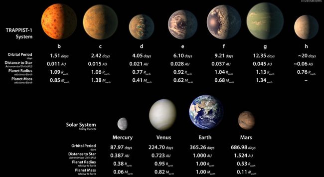Открытие ученых является рекордным по количеству нахождения потенциально пригодных для жизни планет, найденных вокруг одной звезды за пределами нашей Солнечной системы. Все эти семь планет могут иметь жидкую воду – одно из ключевых условий для возникновения жизни, однако самые высокие шансы на это есть только у трех: на них вероятно существование гор, воды и пригодной для дыхания атмосферы.