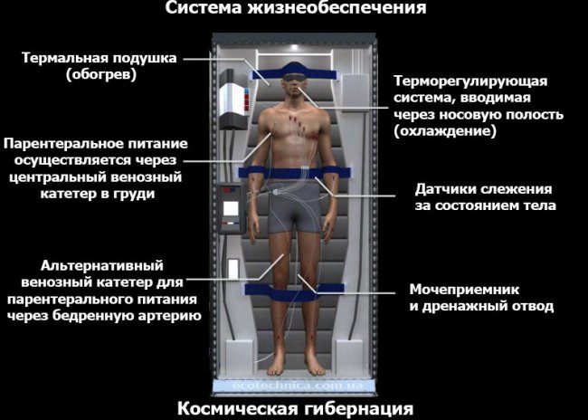 По расчетам NASA путешествие к Марсу может занять, как минимум, 180 дней, то есть путь в одну сторону займет примерно полгода. Приблизительно на такой срок и планируется вводить экипаж в глубокий сон, при этом поступление питательных веществ в организм будет осуществляться за счет внутривенных вливаний. На сегодняшний день технологии медицины позволяют вводить человека в «спячку» без последствий для его здоровья на срок до одной недели.