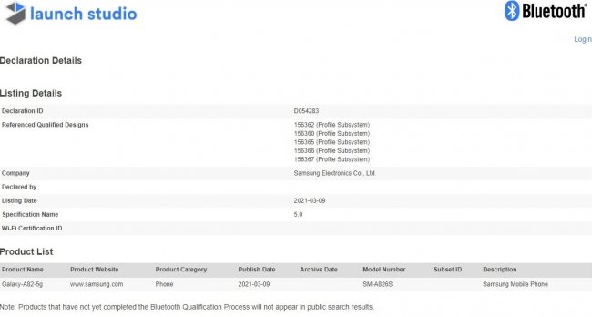 Новая модель на днях прошла сертификацию Bluetooth SIG. В базе данных ведомства она проходит под номером SM-A826S. Известно, что смартфон поддерживает соединение Bluetooth 5.0 с LE (Low Energy) совместимостью, но других подробностей в базе нет.