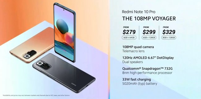 - Redmi Note 10 Pro 6/64 ГБ — $279 (цена на старте продаж $249)