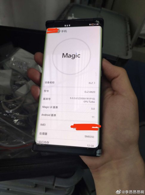 На снимке показан аппарат с включённым изогнутым дисплеем. Устройство имеет номер модели ELZ-AN20 и, согласно утечке, будет работать под управлением топового процессора SM8350. Это кодовое название чипа Snapdragon 888+. Кроме этого, новинка получит из коробки операционную систему Android 11.
