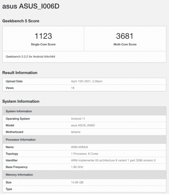 В базе данных теста производительности Geekbench появился ещё неанонсированный флагманский смартфон ASUS.