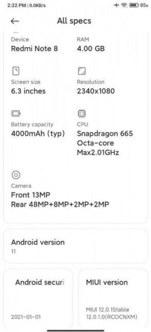 Кроме того, стабильную версию Android 11 получает Redmi Note 8. Правда, пока только в Китае. Прошивка имеет номер сборки MIUI 12.0.1.0 RCOCNXM.