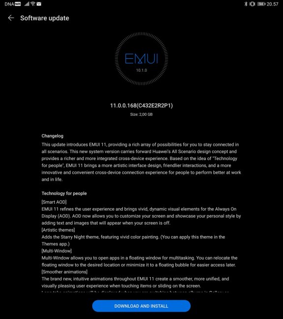 В новую версию ПО добавили большой список изменений, который включает в себя все основные особенности оболочки EMUI 11. Например, обновлённый режим Always-on Display (AOD), новый интерфейс и анимацию, синхронизацию системных звуков и вибрации, анимированные значки, функцию Smart Multi-Window, которая позволяет сворачивать приложения в окна и скрывать их в специальном боковом меню, новые фирменные приложения и многое другое.
