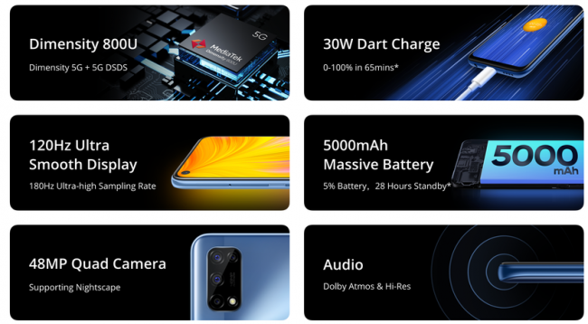 Realme 7 5G вышел в Европе в конце прошлого года. Аппарат имеет 6.5-дюймовый IPS LCD-дисплей с разрешением FHD+, частотой обновления картинки 120 Гц и вырезом для фронтальной камеры на 16 МП. Работает смартфон под управлением процессора MediaTek Dimensity 800U. Это восьмиядерный 7-нанометровый SoC со встроенным 5G-модемом. Также устройство может похвастаться энергоёмким аккумулятором на 5000 мАч с быстрой 30-ваттной зарядкой и основной камерой с четырьмя датчиками на 48 МП + 8 МП + 2 МП + 2 МП. Поставляется аппарат с 6 ГБ ОЗУ, 128 ГБ ПЗУ и ОС Android 10 из коробки.