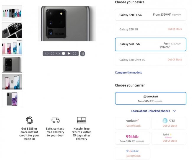 Так, в некоторых регионах смартфоны Samsung Galaxy S20, Galaxy S20+ и Galaxy S20 Ultra исчезли из продаж. Например, в США и Великобритании на официальном сайте указано отсутствие на складе, а у розничных продавцов еще остались некоторые запасы, но они небольшие.