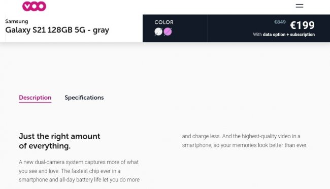 Ровно через неделю, 14 января, компания Samsung представит новые флагманы линейки Galaxy S21. Но уже сейчас в сеть попали официальные ценники новинок. Сколько? Цифры раскрыл бельгийский оператор сотовой связи Voo, причем, похоже, случайно: информация появилась на официальном сайте, но вскоре была