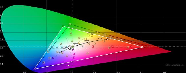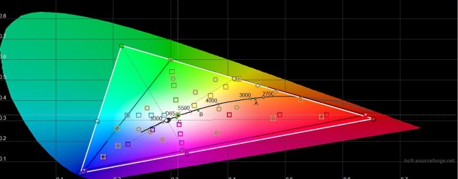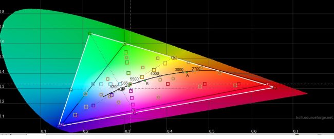 Прекрасный прибор колориметр, которым уже не один год пользуется редакция gg, позволяет объективно, а не на глаз, оценивать технические возможности и калибровку дисплеев. Для того, чтобы самостоятельно научиться разбираться во всех этих графиках, мы сделали отдельную статью с объяснениями. Итак, у нас два дисплея: внешний и внутренний, каждый из которых мы протестировали в двух режимах работы: с ярким и естественным отображением цветов.