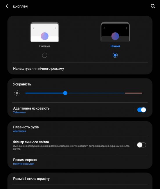 Несмотря на то, что экранов у Galaxy Z Fold2, оба его дисплея настраиваются одновременно — в настройках нет разделения на внешний и внутренний дисплей. Любые изменения (вплоть до времени отключения неработающего экрана) будут касаться сразу оба экрана. В принципе, большая часть настроек точно такая же, как у любого другого смартфона Samsung с одной из версией AMOLED-экрана. В этом месте напомню, что внешний дисплей — это Super AMOLED с диагональю 6.23", разрешением 2260х816 пикселей и защитным покрытием Gorilla Victus. Внутренний — Dynamic AMOLED 2X со сгибающейся подложкой UTG, о которой я писал в прошлый раз. Она сама по себе прочная и износостойкая, к тому же Corning не изобрела еще защитного покрытия, способного изгибаться, да оно и в меньшей степени необходимо внутреннему экрану, который защищен корпусом в сложенном состоянии. Разрешение внутреннего экрана 2208х1768 пикселей при диагонали 7.6 дюймов.