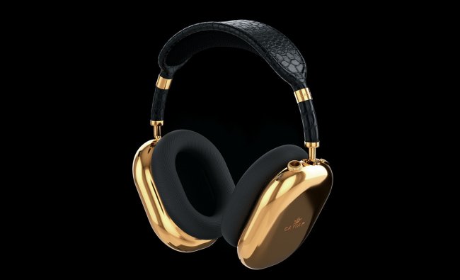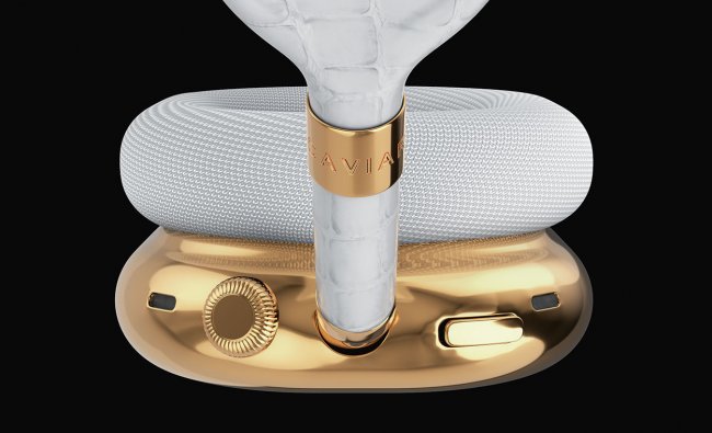 Следующая новинка — полноразмерные наушники AirPods Max с чашечками из золота 750-й пробы и оголовьем из крокодиловой кожи. На выбор есть черная и белая версии.