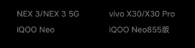 Ближе к Китайскому Новому Году (12 февраля) тестовая прошивка станет доступна также на смартфонах Vivo Nex 3, Vivo Nex 3 5G, Vivo X30, iQOO Neo и iQOO Neo 855, а во втором квартале 2021 года планируют обновить Vivo X27, Vivo X27 Pro, Vivo S5, Vivo S1, Vivo Z5, Vivo Z5x, Vivo S6, Vivo S1 Pro, Vivo Z6, , Vivo Nex, Vivo Nex S, iQOO Z1x и iQOO Z1.
