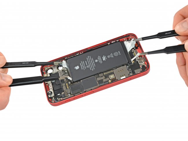 Также внутри прячется довольно маленький аккумулятор — и по емкости, и по размеру. Его емкость составляет 8,57 Втч. Тем не менее, это все равно больше, чем у iPhone SE второго поколения.