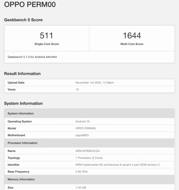 Работать OPPO K7x будет на восьмиядерном чипе MediaTek Dimensity 720. Это подтверждает тест производительности Geekbench. Также новинке приписывают основную камеру с датчиками на 48 Мп + 8 Мп + 2 Мп + 2 Мп, 6/8 ГБ ОЗУ, 64/128/256 ГБ ПЗУ и батарею на 5000 мАч с быстрой 30-ваттной зарядкой.