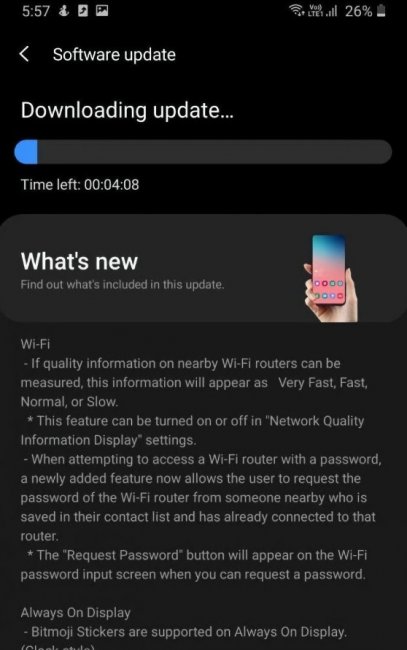 В этот раз прошивку выпустили для Galaxy A70s. Система вышла с номером сборки A707FDDU3BTH4. Она весит 1.6 ГБ. В обновление добавили октябрьский патч безопасности, функцию Wireless DeX, обновлённый режим Pro Mode для камеры, новые возможности Always On Display и многое другое.