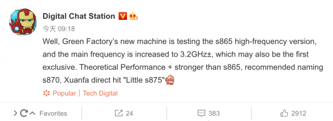 Об этом рассказал китайский инсайдер Digital Chat Station. Процессор проходит с рабочим названием Snapdragon 870. Новинка получит восемь ядер. Одно из них будет сверхмощным с максимальной тактовой частотой 3.2 ГГц. Таким образом процессор станет мощнее текущего SoC Snapdragon 865, но до Snapdragon 875 он не дотянет.