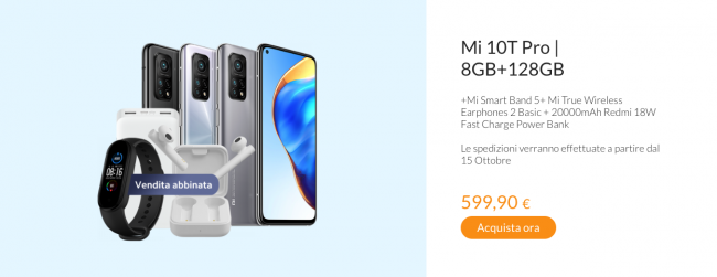 Если же заказывать модификацию Xiaomi Mi 10T Pro со 128 ГБ ПЗУ за 599 евро или обычный Xiaomi Mi 10T с 6/128 ГБ памяти за 499 евро, то можно получить смарт-браслет Xiaomi Mi Band 5, TWS-наушники Xiaomi Mi True Wireless Earphones 2 Basic и переносной аккумулятор Redmi 18W Fast Charge Power Bank с ёмкостью в 20 000 мАч.