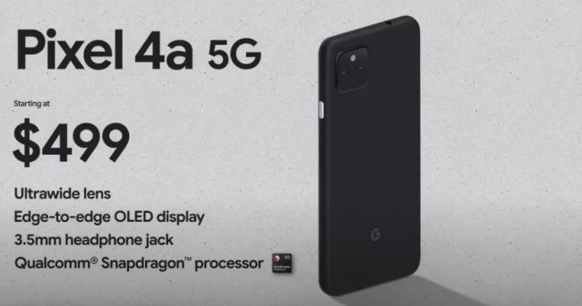 Google Pixel 4a 5G оценили в $499. Это на $150 дороже Pixel 4a и на $200 дешевле Pixel 5.