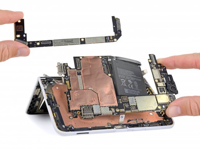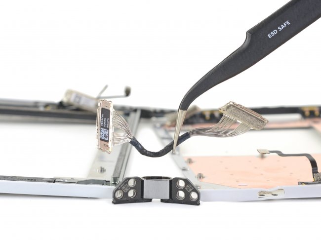 Кроме того, порт USB-C припаян прямо к основной плате, а для большинства ремонтов необходимо снимать OLED-дисплеи. Но есть и плюс: замену дисплеев и задних стекол можно производить без разборки других компонентов.