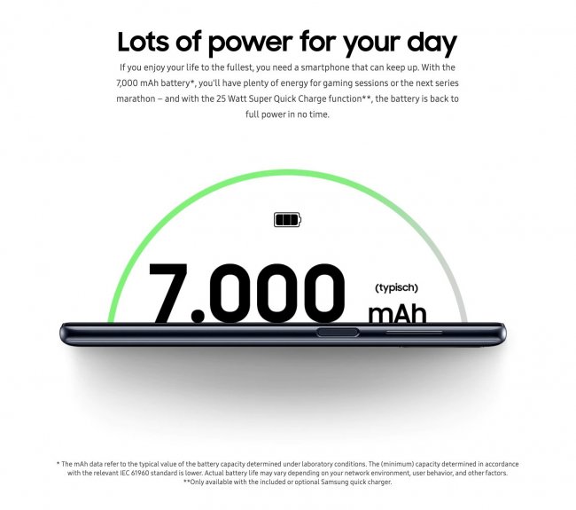 Но главная гордость Galaxy M51 — это аккумулятор емкостью 7000 мАч. Поддерживается быстрая зарядка мощностью 25 Вт, но все равно на полную зарядку необходимо около 2 часов.