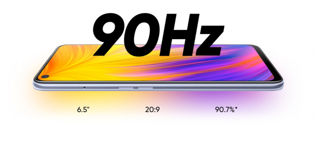 Realme V5 оснастили 6.5-дюймовым LCD-дисплеем с разрешением Full HD+, вырезом под фронтальную камеру на 16 Мп, частотой обновления картинки 90 Гц и частотой считывания 180 Гц. Экран занимает 90.7% площади всей передней панели.
