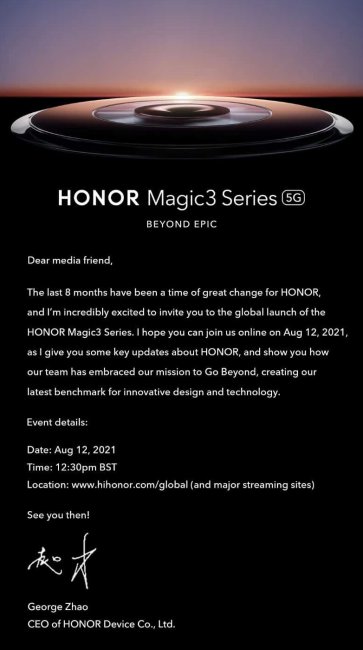 Вчера мы писали о том, что инсайдер OnLeaks назвал дату презентации нового смартфона Honor Magic 3. Сегодня компания Honor подтвердила ее.