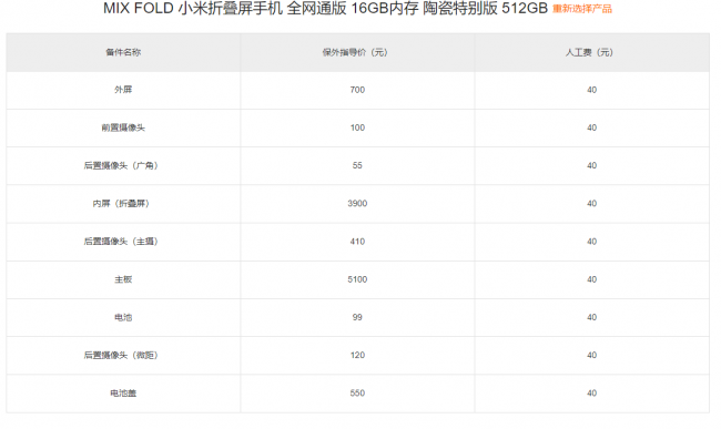 А вот замена внутреннего экрана стоит дешевле — $595. За замену внешнего экрана надо отдать еще меньше — всего $107. Отметим, что в качестве примера взяли специальную версию Mi Mix Fold с керамической панелью и 16 ГБ памяти.