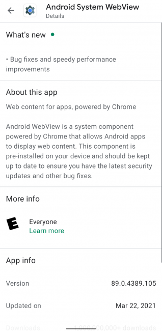 Google уже выпустил экстренное обновление с устранением ошибки. Чтобы решить проблему, вам необходимо в Google Play обновить Android System WebView до версии 89.0.4389.105 и Google Chrome до актуальной версии.