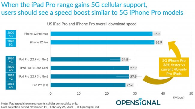 Аналитическая компания Opensignal провела в США исследование с целью выяснить скорость загрузки данных в сетях 5G/4G для различных смартфонов. В тестировании приняли участие и смартфоны семейства iPhone 12, которые стали первыми гаджетами Apple с поддержкой 5G.
