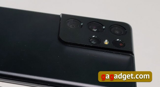 Отдельно радует модуль камеры, который выступает над задней крышкой не так сильно, как у Galaxy S20 Ultra и Galaxy Note 20 Ultra. Что меня окончательно примирило с этим выступом — так это фирменные чехлы. Чехол маскирует выступ настолько, что дизайн смартфона начинает смотреться как единое целое, создавая завершенную картину.