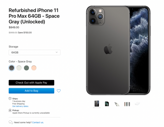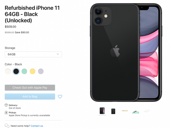 Кстати, кроме Pro-версий в продаже также появился iPhone 11 Refurbished с ценником от $509 до $639. Новый iPhone 11 продают в США сейчас от $599.