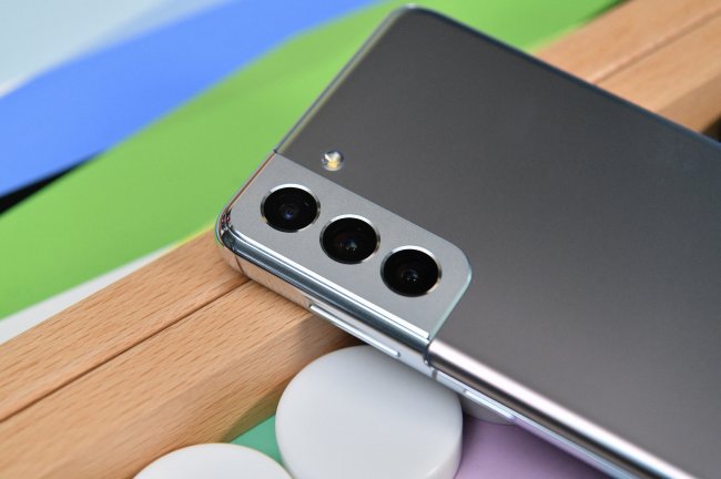 Кстати, камеры у Galaxy S21 и Galaxy S21+ идентичны не только внешне. Они включают 12-мегапиксельный датчик (f/1.8) с оптической стабилизацией, 64 МП «телевик» (f/2.0) с OIS и 3-кратным гибридным зумом, а также 12 МП ультраширокоугольную камеру (f/2.2) с углом обзора 120 градусов. Этот набор дополняет вспышка, которая вынесена за блок камеры. Фронтальная камера тоже одинаковая у обоих смартфонов — 10-мегапиксельная с диафрагмой f/2.2.