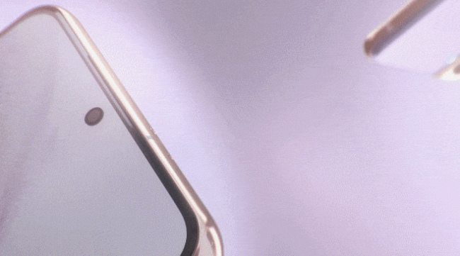 Samsung Galaxy S21 в тизере показан в цвете Phantom Violet. Мы видим плоский дисплей, круглый вырез для фронтальной камеры, тройную основную камеру. Некоторые части корпуса будут бронзовыми, контрастирующими с фиолетовым цветом.