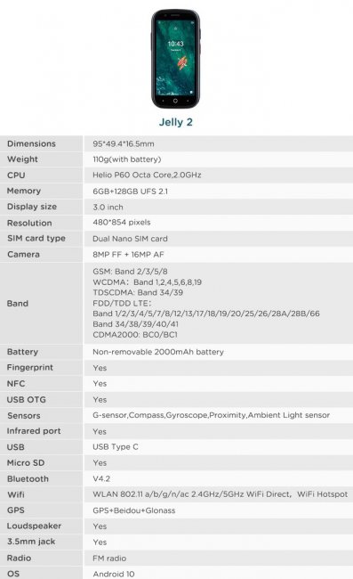 Напомним, Unihertz Jelly 2 получил 3-дюймовый дисплей с разрешением 854×480 точек, процессор MediaTek Helio P60, целых 6 ГБ оперативной памяти, 128 ГБ хранилища, скромный аккумулятор емкостью 2000 мАч, две камеры (16 Мп основная и 8 Мп фронталка), сканер отпечатков пальцев и NFC.