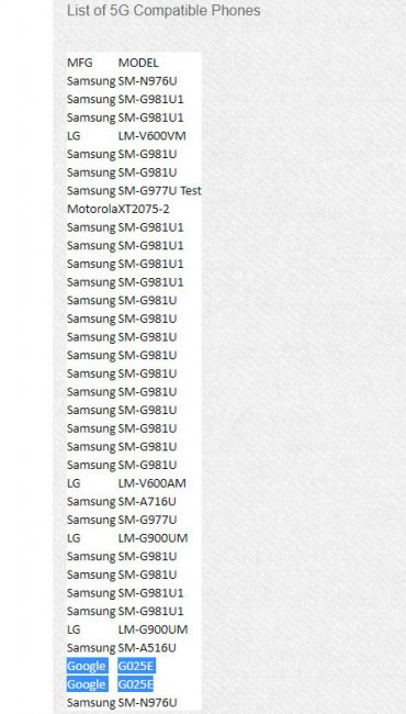 Несмотря на то, что Pixel 4a ещё не вышел, компания Google уже работает над его 5G-версией. Что известно На сайте американского оператора Boom!Mobile появился список смартфонов с поддержкой 5G-сети. В нём есть аппарат с номером модели Google G025E. По словам издания XDA-Developers, это версия Pixel