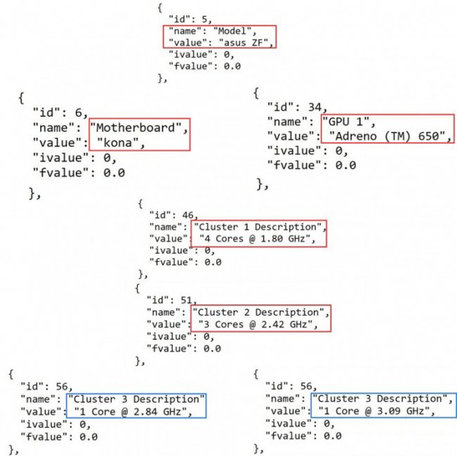 В этом коде указаны две максимальные тактовые частоты — 2,84 и 3,09 ГГц. Первая соответствует процессору Snapdragon 865, а вот показатель 3,09 ГГц выдает его улучшенная версия — Snapdragon 865+. Источники полагают, что ASUS выпустит ZenFone 7 с чипом Snapdragon 865 и Zenfone 7 Pro с Snapdragon 865+. Чем еще они будут отличаться — пока непонятно.