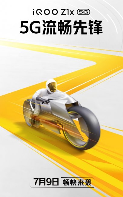 Новинку назовут iQOO Z1x 5G и, согласно официальному постеру, анонсируют в Китае в следующий четверг — 9 июля. По слухам, ценник аппарата составит 2000 юаней (около 282 долларов США).