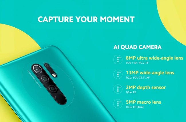 Основная камера выполнена в форме круга, как уRedmi K30. У нее четыре модуля: 8 Мп ультраширокоугольная камера, 13 Мп широкоугольная, 5 Мп макрообъектив и 2 Мп датчик глубины. Фронтальная камера 8-мегапиксельная.