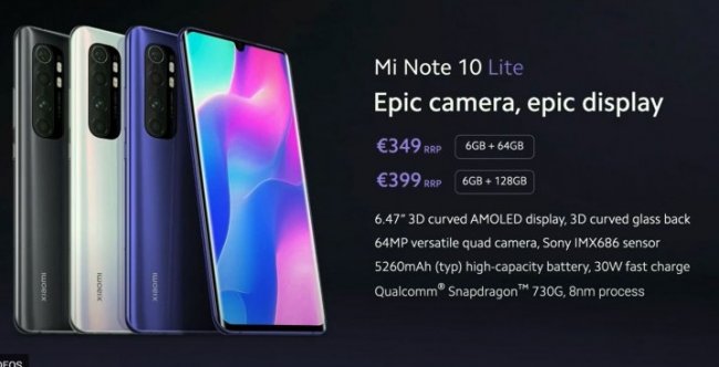В Европе Xiaomi Mi Note 10 Lite будет стоить €349 за версию с 6/64 ГБ и €399 за 6/128 ГБ. Еще обещают модификацию с 8/128 ГБ, но ее стоимость пока неизвестна. Для сравнения, за Mi Note 10 на старте продаж просили €550 (6/128 ГБ).