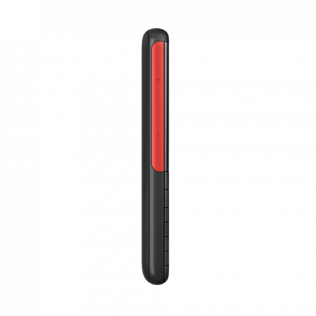 Телефон получил 2,4-дюймовый цветной дисплей с физической клавиатурой и кнопками оранжевого цвета для управлением музыкой по бокам.