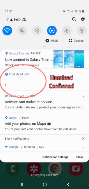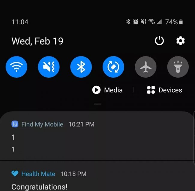 Уведомления пришли через Find My Mobile — приложение, которое позволяет найти или удалённо заблокировать своё устройство, создавать резервные копии данных, а также хранит данные Samsung Pay.