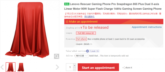 На китайской площадке JD.com открыли предзаказ на ещё неанонсированный игровой смартфон Lenovo Legion.