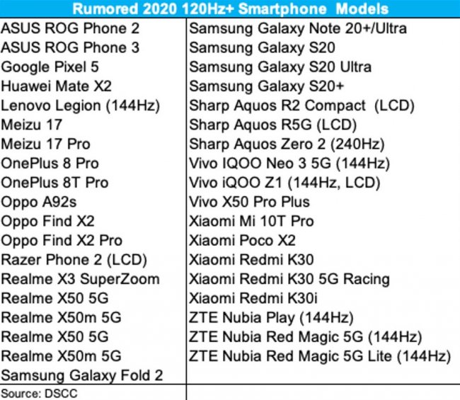 Основатель и исполнительный директор Display Supply Chain Consultants (DSCC) Росс Янг (Ross Young) поделился списком смартфонов, которые получат дисплеи с частотой обновления 120 Гц и даже выше.