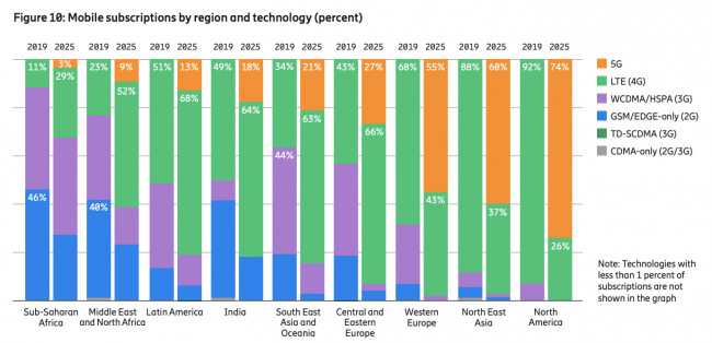 В Центральной и Восточной Европе (куда относимся и мы) на сети 5G будет приходиться 27% подключений до 2025 года, а количество 4G-подключений вырастет с 43% до 66%. Лидировать по внедрению 5G будут США, Западная Европа и Северо-Восточная Азия (читай — Южная Корея, Китай и Япония).