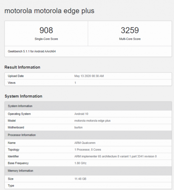 Тестовая модель устройства проходит с номером модели vivo V1986A, 8 ГБ ОЗУ и операционной системой Android 10 на борту. В одноядерном тесте смартфон набирает 784 балла, а в многоядерном — 3085. Если сравнивать новый SoC с чипами Snapdragon 865 и Kirin 990 на примере Motorola Edge+ и Huawei Mate 30 Pro 5G соответственно, то результаты плюс-минус похожи.