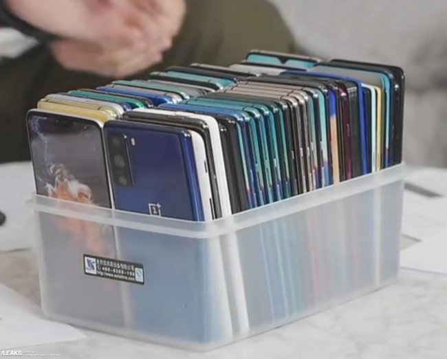 Это скриншоты из видео одного из руководителей компании Пита Лау (Pete Lau). На нем коробка с прототипами смартфонов OnePlus, и на переднем плане — тыльная панель OnePlus 8 Lite.
