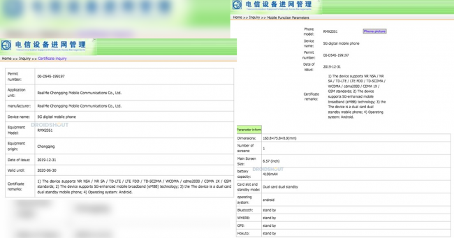 Если верить базе данных TENAA, Realme X50 5G получит 8.9-миллиметровый корпус, в который поместилась батарея на 4 100 мАч. К тому же заявлена поддержка быстрой зарядки Enhanced VOOC 4.0. Смартфон также получит 6.57-дюймовый дисплей с IPS матрицей. X50 также приписывают боковой сканер отпечатка пальцев и двойную селфи-камеру в левом верхнем углу экрана.