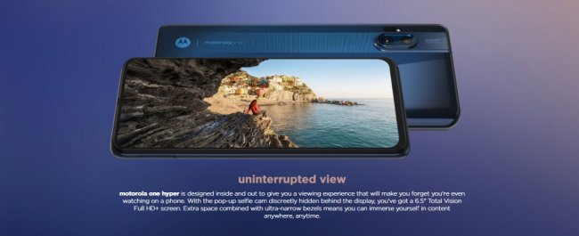 Motorola One Hyper: 6.5-дюймовый экран, основная камера на 64 Мп, выезжающая фронтальная, чип Snapdragon 675, Android 10 из коробки и ценник в $400 - «Смартфоны»