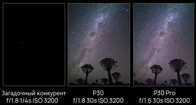 У Huawei P30 задняя камера тройная. Здесь также используется 40-мегапиксельный сенсор со схемой RYB и оптическая стабилизация, но отличается оптика — f/1.8. «Ширик» 16-мегапиксельный, третий 8-мегапиксельный модуль с трёхкратным приближением. P30 также поддерживает ночной режим. Селфи-камера та же, на 32 мегапикселя.