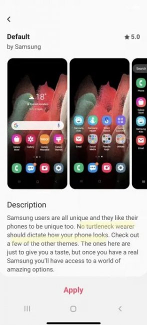 Речь идет о рекламе приложения iTest. В его описании говорится: «Все пользователи Samsung уникальны, и им тоже нравится, чтобы их телефоны были уникальными. Ни один владелец водолазки не должен диктовать, как будет выглядеть ваш телефон. Ознакомьтесь с некоторыми другими темами».