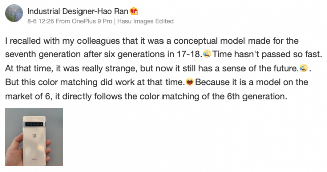 Одни из индустриальных дизайнеров компании опубликовал на своей странице в Weibo изображение прототипа смартфона OnePlus 7. Такой внешний вид аппарата придумали сразу после релиза OnePlus 6 в 2018 году. Устройство на фото имеет стеклянный корпус и большой горизонтальный выступ для камеры, как у нового «гуглофона».
